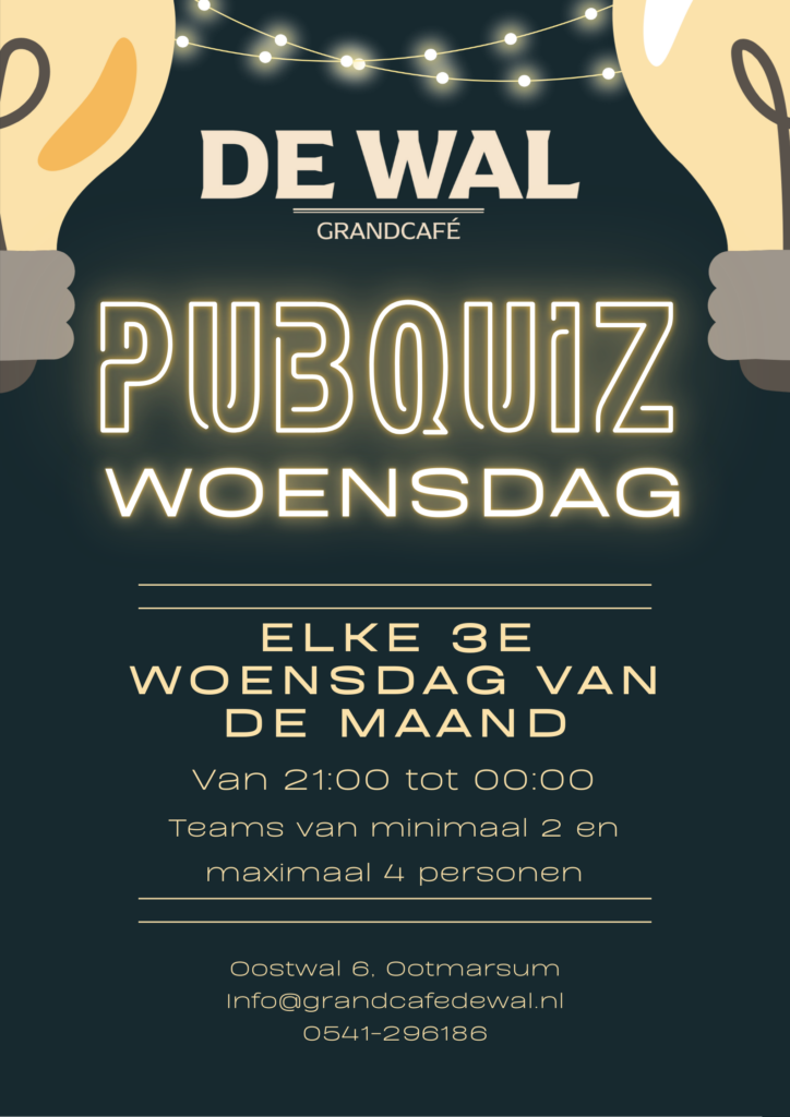 Iedere 3e woensdag van de maand organizeren wij een GEWALDIG mooie pubquiz bij ons in het café.